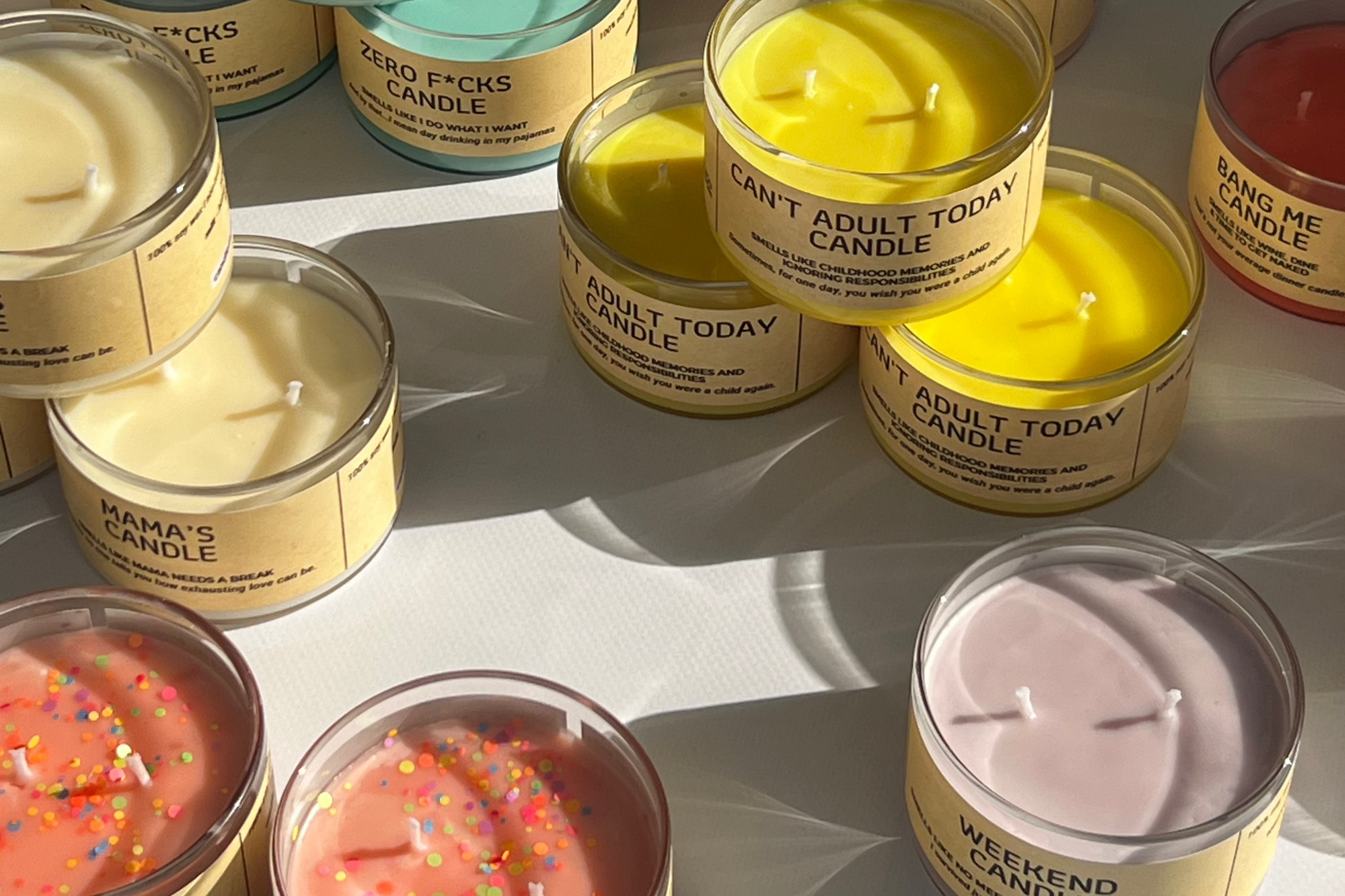 Brutal de oneste, cu aromă de ironie și bună dispoziție, lumânările noastre sunt din ceară de soia pură, fără alte forme de aditivi, cu fitiluri din bumbac sau lemn și uleiuri parfumate non-toxice, certificate IFRA.
