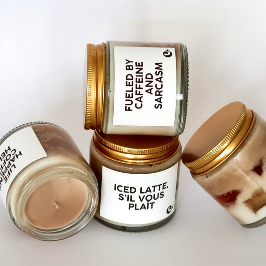Lumânare parfumată din ceară de soia Iced Latte - FUELED BY CAFFEINE AND SARCASM coffee - sugar - milk 100g