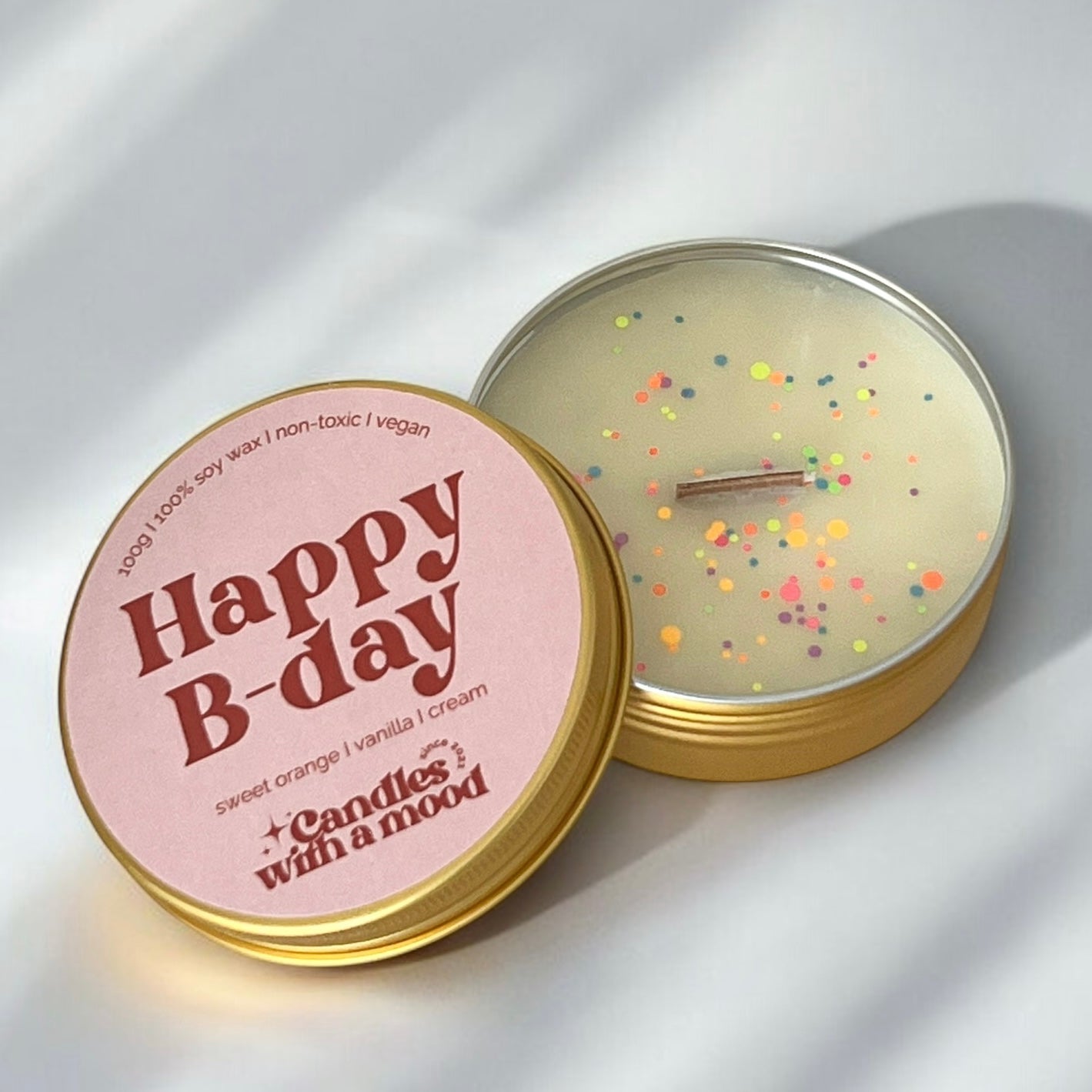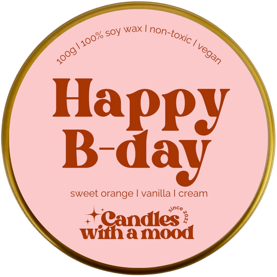 Lumânare parfumată din ceară de soia HAPPY B-DAY sweet orange - vanilla - cream 100g