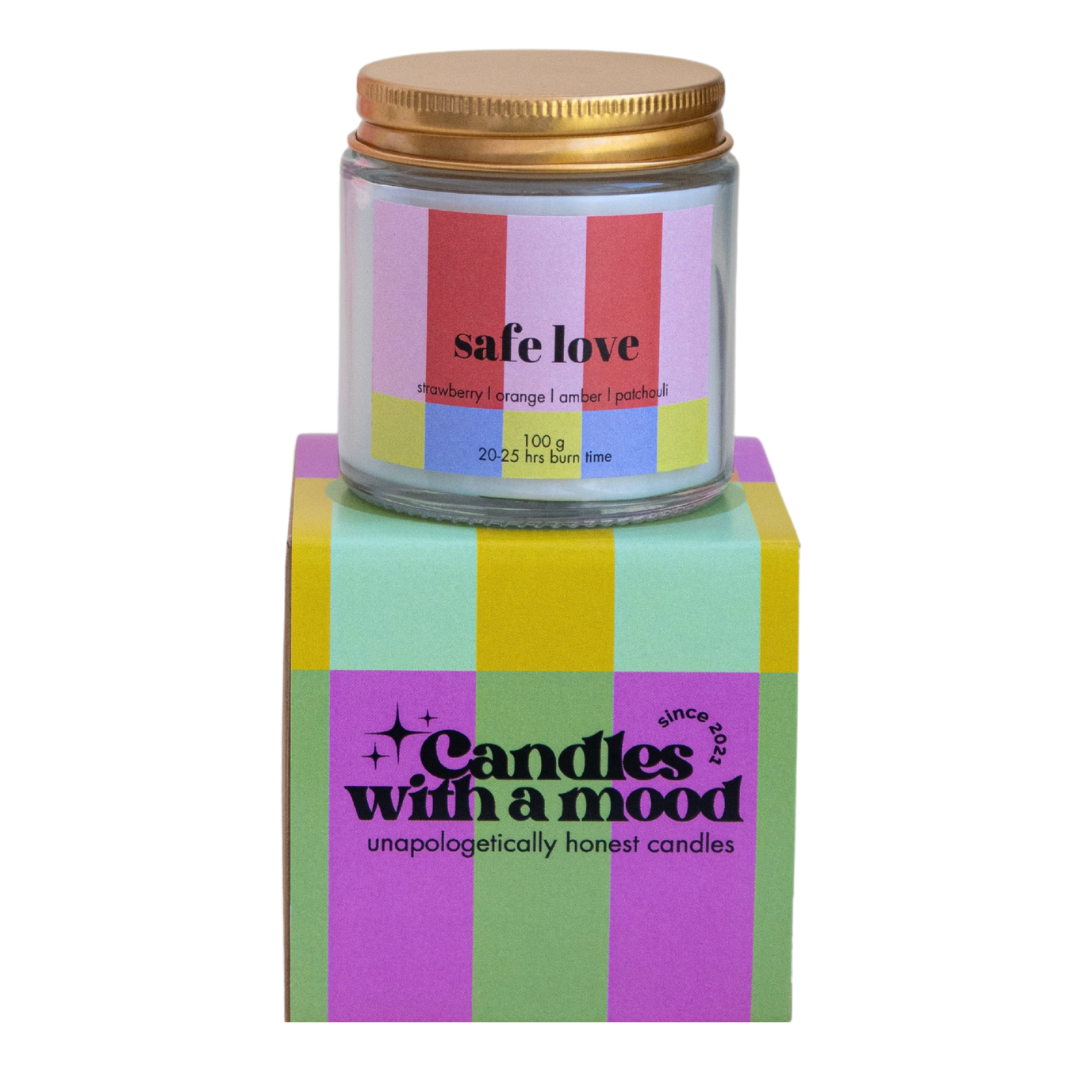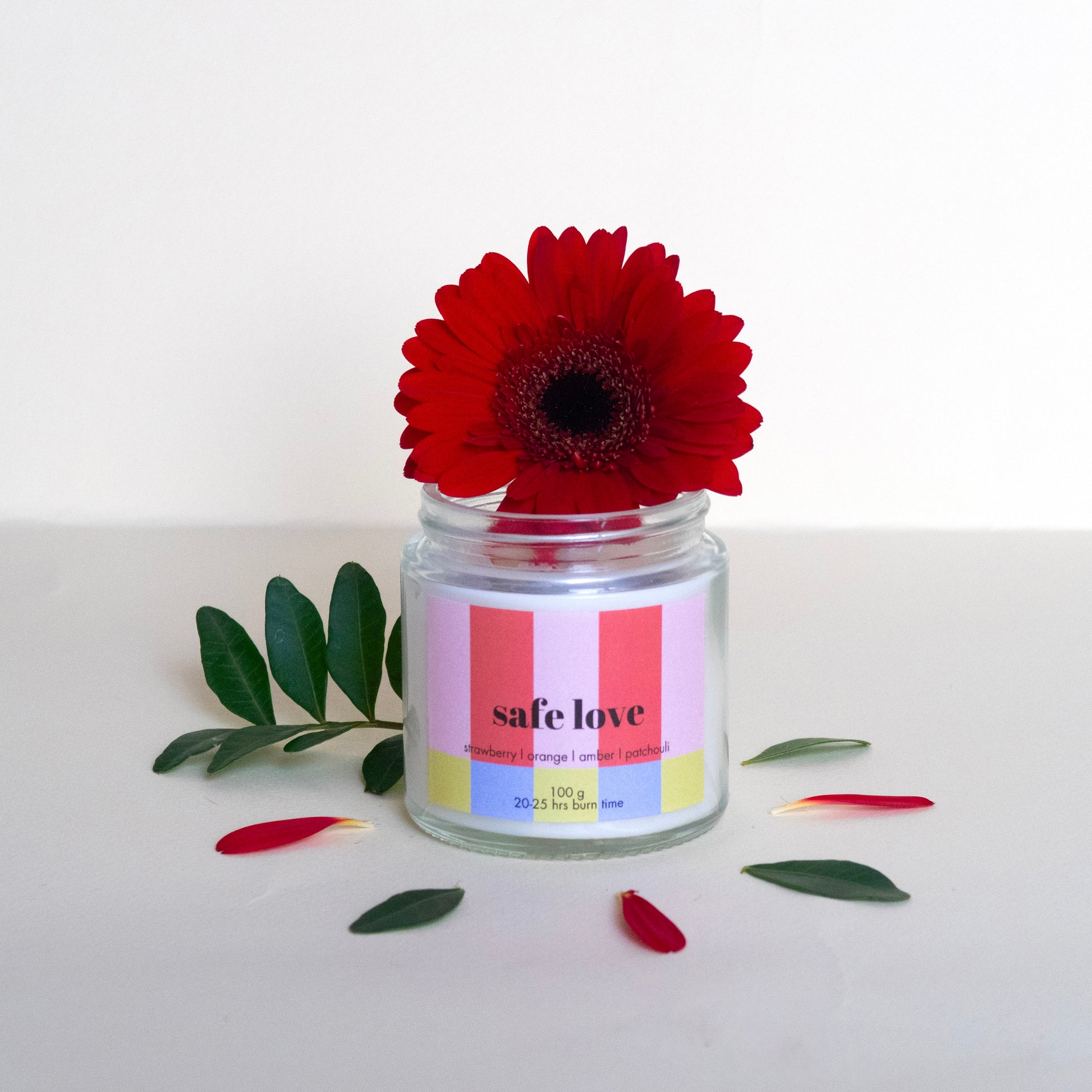 Lumânare parfumată din ceară de soia SAFE LOVE strawberry - orange - amber - patchouli 100g
