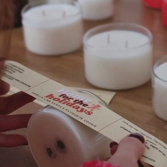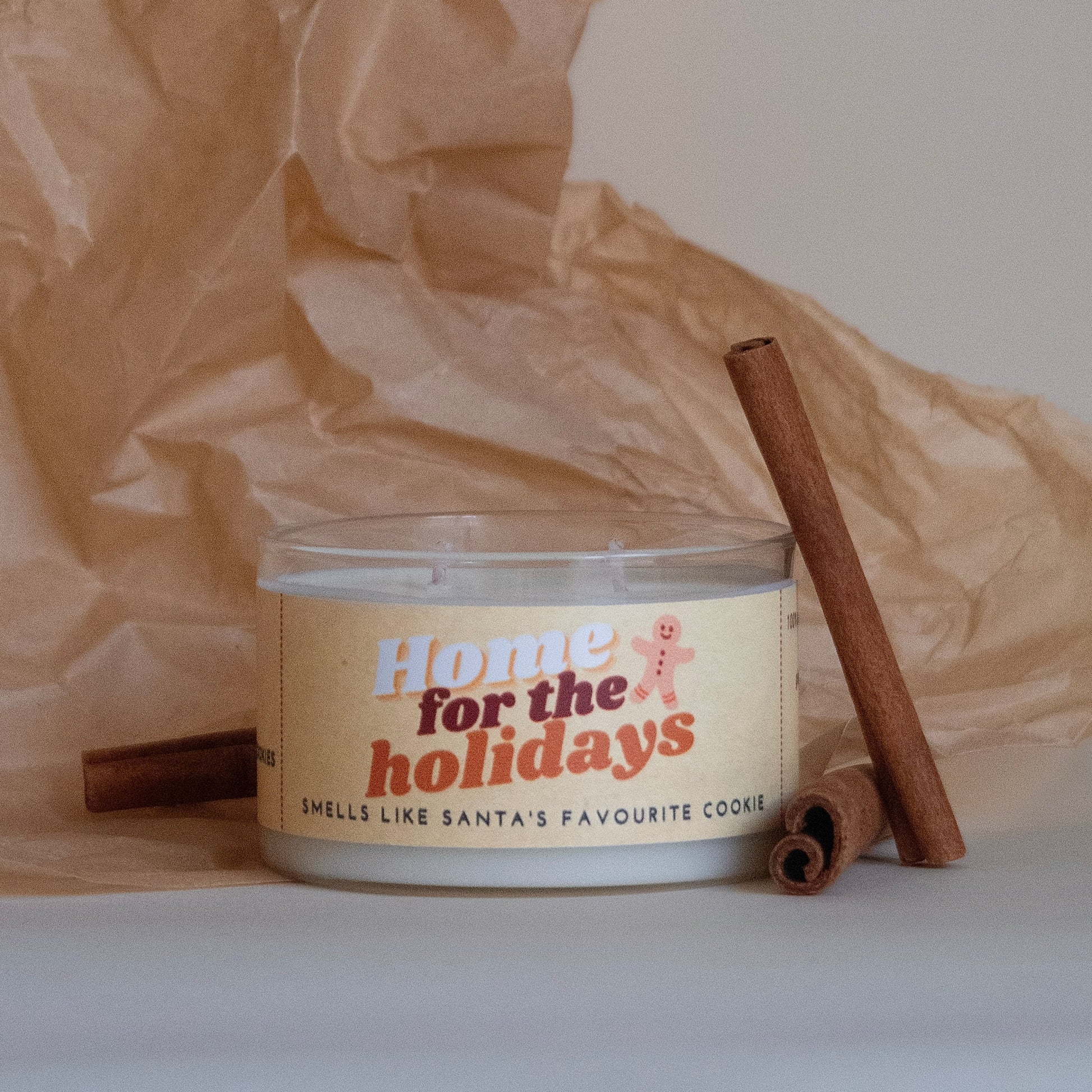 Lumânare parfumată din ceară de soia HOME FOR THE HOLIDAYS gingerbread - nutmeg - maple syrup - caramel 190g