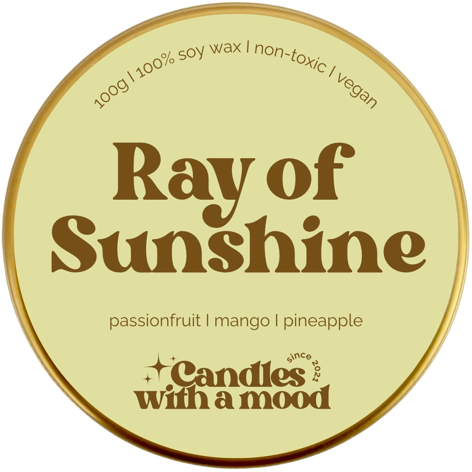 Bring some peace, love and light into your life with the RAY OF SUNSHINE candle. Made from soy wax with the tropical scents of passionfruit, mango, and pineapple, this candle will surely brighten up any room. Perfect for any occasion, even if you're feeling a little "go fuck yourself". (We won't judge.)