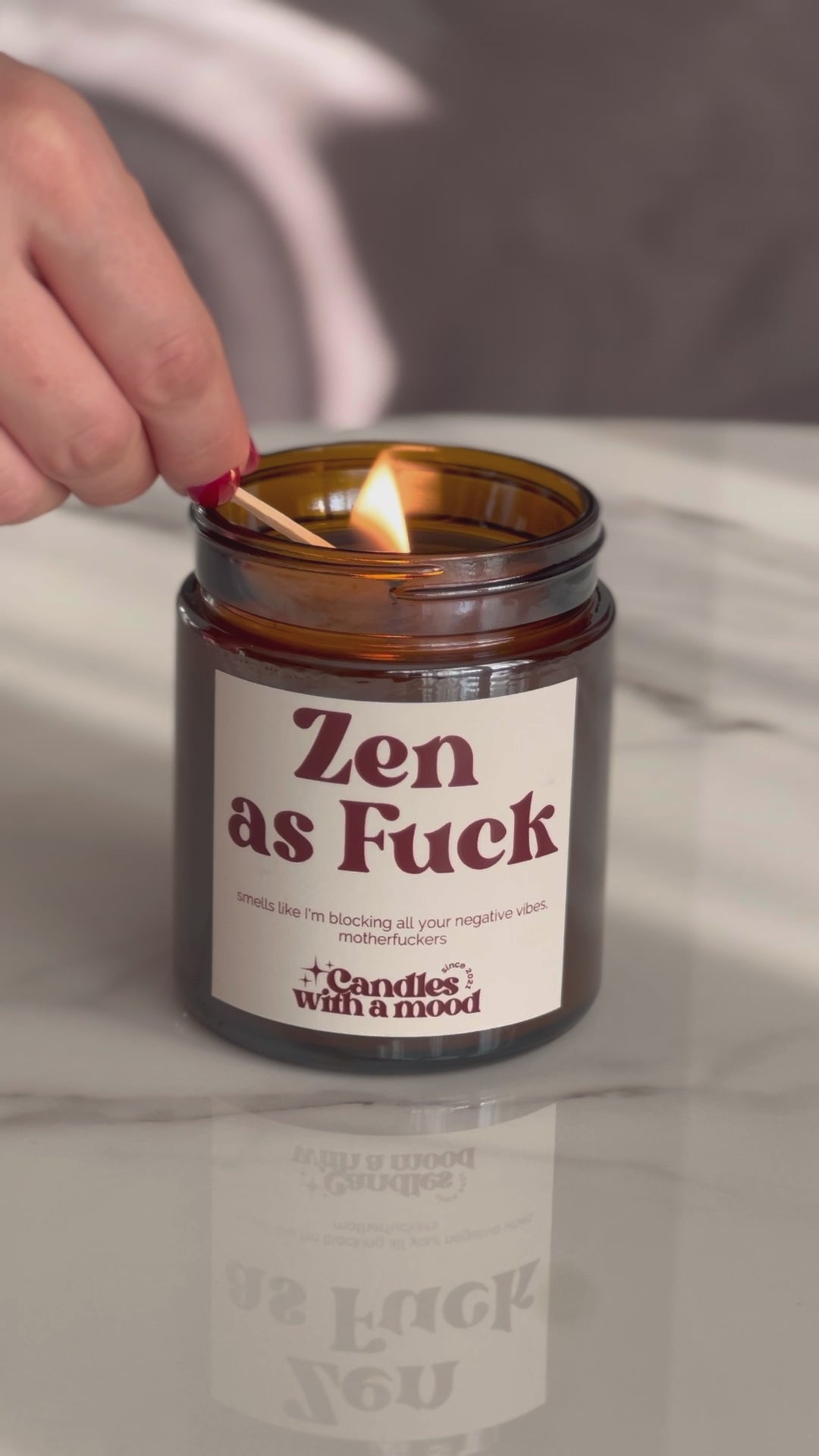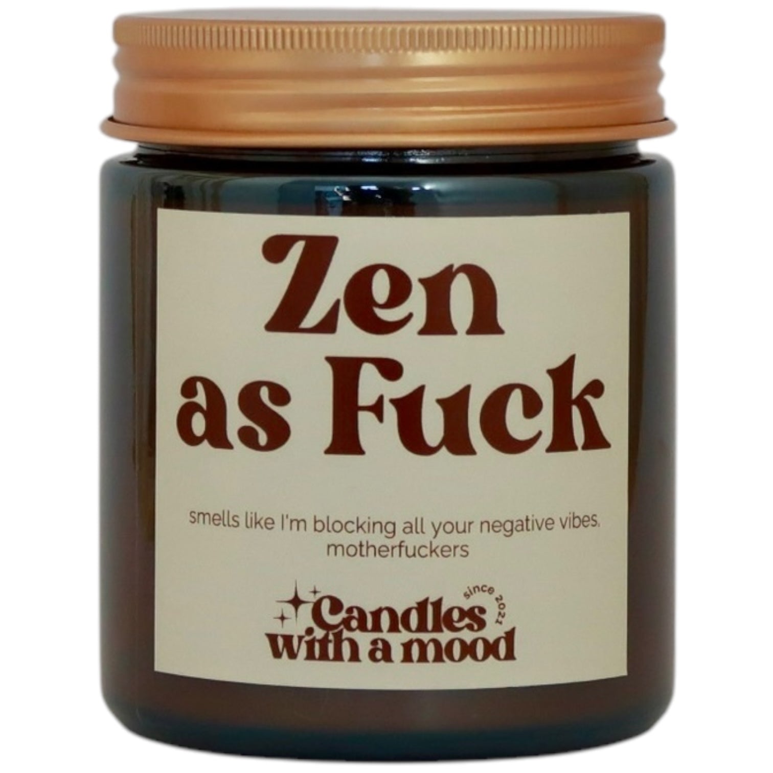 Get in the zone with this Zen as fuck candle. Made from 100% soy wax, the peach, pear, freesia, and french vanilla scents will transport you to a state of calm and relaxation. Light up and embrace your inner Zen, because let's face it, you need it. Namaste.